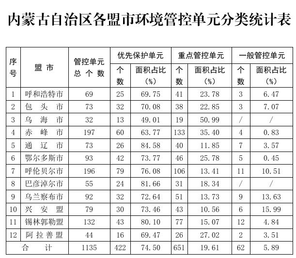 ??????2.內(nèi)蒙古自治區(qū)各盟市環(huán)境管控單元分類統(tǒng)計(jì)表
