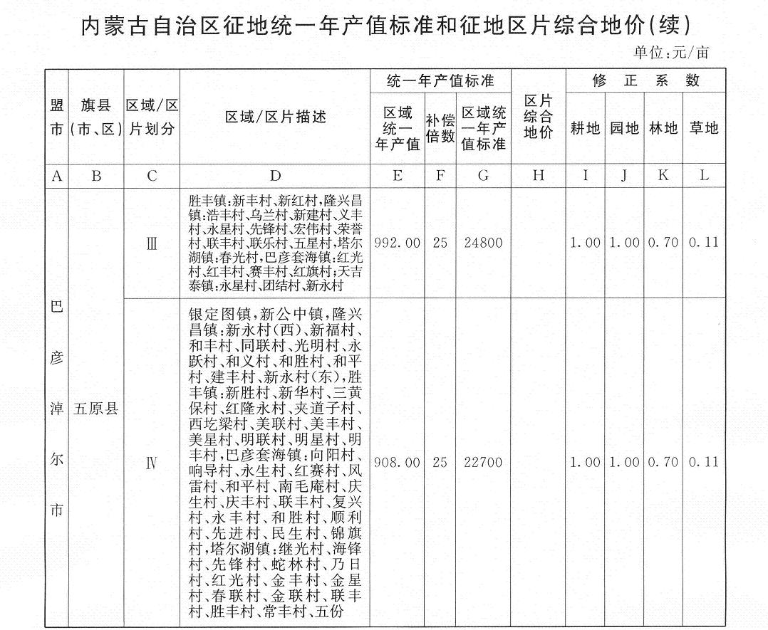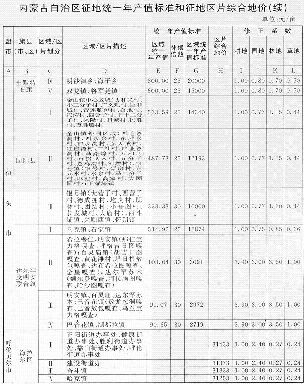 《內(nèi)蒙古自治區(qū)人民政府辦公廳關(guān)于公布實(shí)施自治區(qū)征地統(tǒng)一年產(chǎn)值標(biāo)準(zhǔn)和征地區(qū)片綜合地價(jià)的通知》(內(nèi)政辦發(fā)〔2009〕129號(hào))同時(shí)廢止。