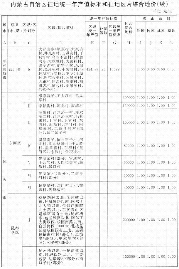 《內(nèi)蒙古自治區(qū)人民政府辦公廳關(guān)于公布實(shí)施自治區(qū)征地統(tǒng)一年產(chǎn)值標(biāo)準(zhǔn)和征地區(qū)片綜合地價(jià)的通知》(內(nèi)政辦發(fā)〔2009〕129號(hào))同時(shí)廢止。