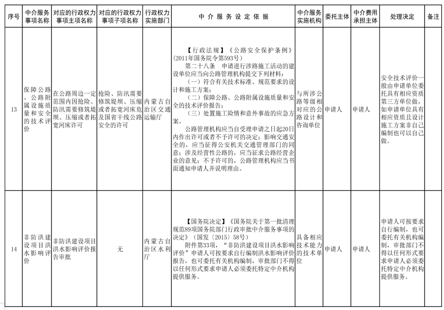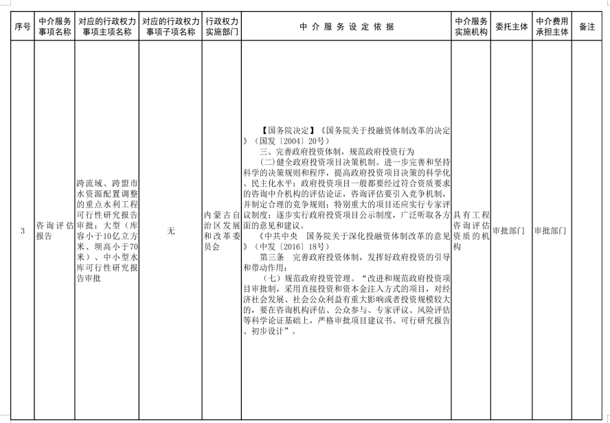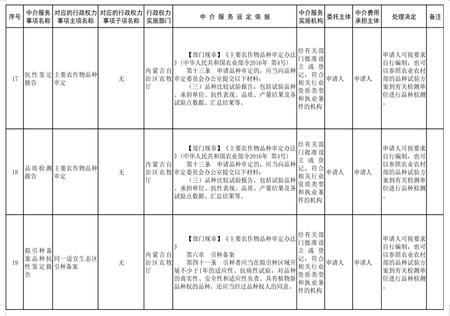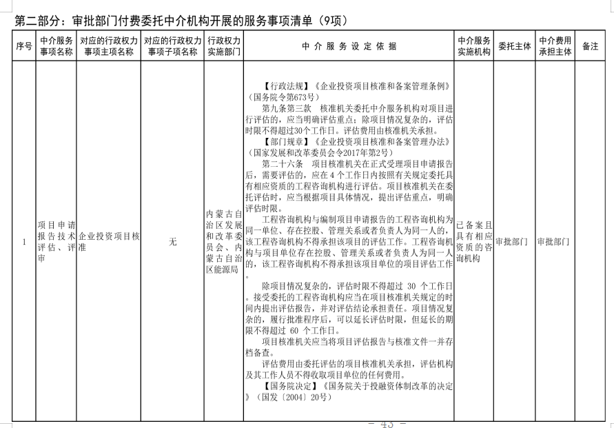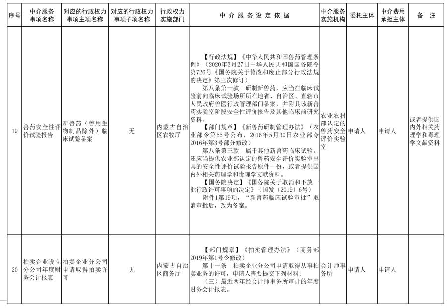 自治區(qū)對本級各部門在實(shí)施行政審批、備案等行政權(quán)力過程中所涉及的中介服務(wù)事項(xiàng)實(shí)行清單式管理。凡未納入《內(nèi)蒙古自治區(qū)本級保留由申請人付費(fèi)委托行政權(quán)力中介服務(wù)事項(xiàng)清單(2021年)》的事項(xiàng),行政機(jī)關(guān)不得以任何形式要求申請人委托中介機(jī)構(gòu)開展服務(wù),包括各類技術(shù)審查、論證、評估、評價(jià)、檢驗(yàn)、檢測、鑒證、鑒定、證明、咨詢、試驗(yàn)等??赏ㄟ^征求部門意見、加強(qiáng)事中事后監(jiān)管予以解決或申請人可按要求自行完成的事項(xiàng),一律不得設(shè)定強(qiáng)制性中介服務(wù);現(xiàn)有或已經(jīng)取消的行政權(quán)力事項(xiàng),一律不得轉(zhuǎn)為中介服務(wù);單項(xiàng)中介服務(wù)事項(xiàng),一律不得拆分為多個(gè)環(huán)節(jié)。