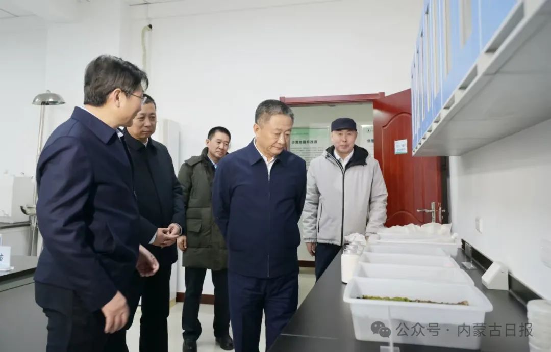 12月31日,自治區(qū)黨委書(shū)記孫紹騁走進(jìn)林科院沙地生物資源保護(hù)與培育國(guó)家林草局重點(diǎn)實(shí)驗(yàn)室,詳細(xì)了解防沙治沙技術(shù)研究、沙化土地綜合治理、林草產(chǎn)品研究及成果轉(zhuǎn)化等情況,就一些關(guān)心關(guān)注的事項(xiàng)與科研工作者進(jìn)行深入交流。草原云·內(nèi)蒙古新聞網(wǎng)記者?馬建兵? 攝