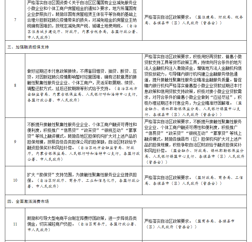 自治區(qū)接觸性聚集性服務(wù)業(yè)精準(zhǔn)紓困若干政策措施落實(shí)意見任務(wù)分解方案
