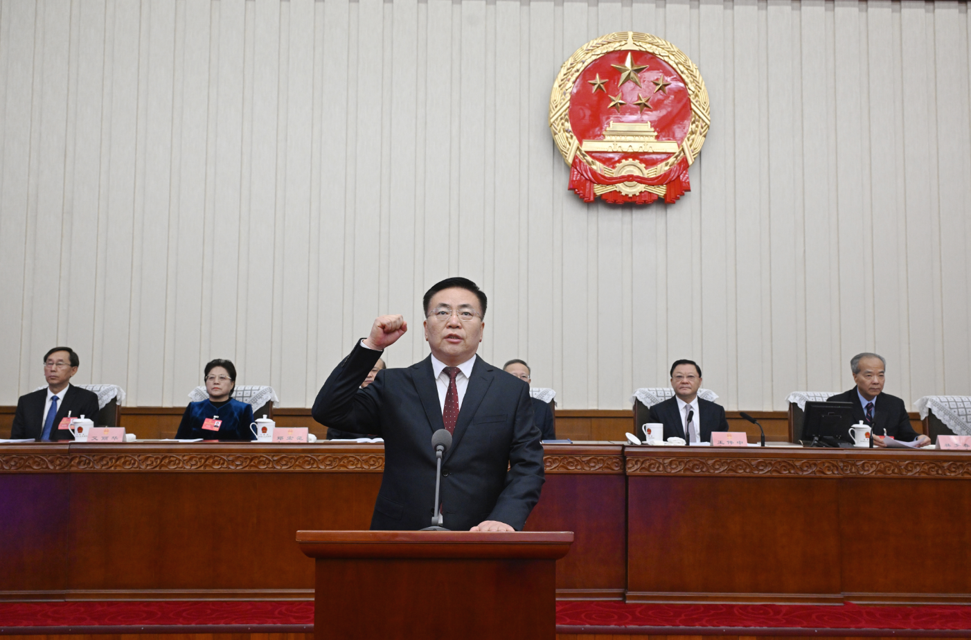包鋼向憲法莊嚴(yán)宣誓并作表態(tài)發(fā)言。包鋼表示,一定矢志不渝沿著習(xí)近平總書記指引的方向篤定前行,旗幟鮮明講政治,實(shí)干擔(dān)當(dāng)促發(fā)展,用心用情惠民生,在建設(shè)“兩個屏障”、“兩個基地”、“一個橋頭堡”上展現(xiàn)新作為,呵護(hù)好“模范自治區(qū)”的崇高榮譽(yù)。一定依法依規(guī)盡職責(zé),清正廉潔守底線,自覺接受人大及其常委會監(jiān)督,深入推進(jìn)黨風(fēng)廉政建設(shè)和反腐敗斗爭,在自治區(qū)黨委帶領(lǐng)下,與政府系統(tǒng)的同志們一道,勠力同心、傾情奉獻(xiàn),奮力書寫中國式現(xiàn)代化內(nèi)蒙古新篇章。