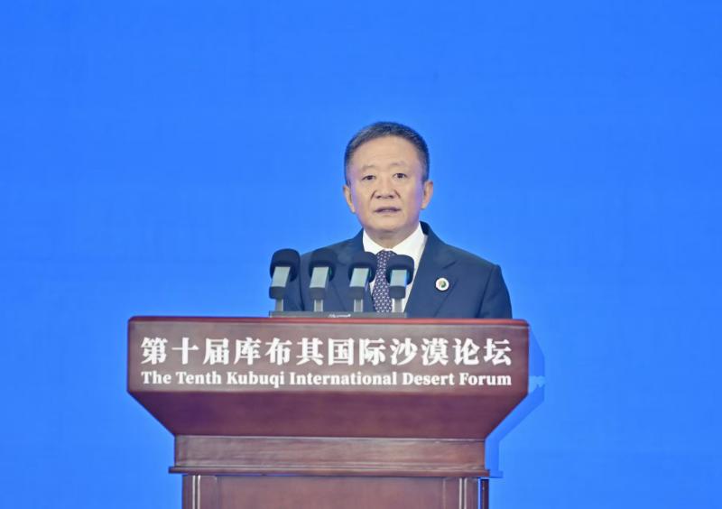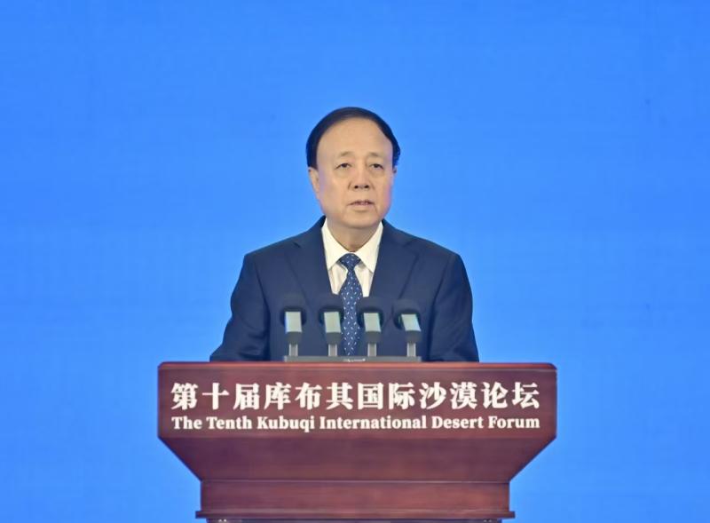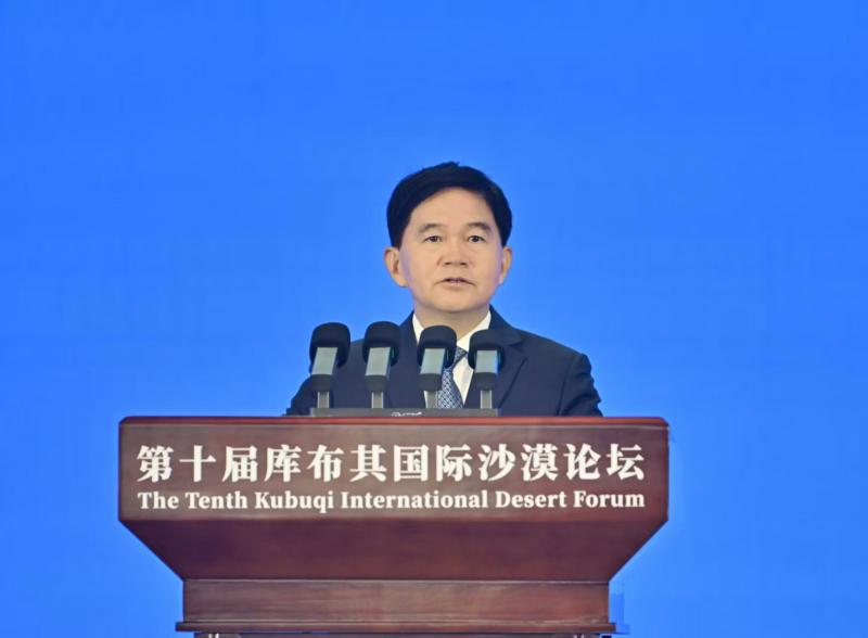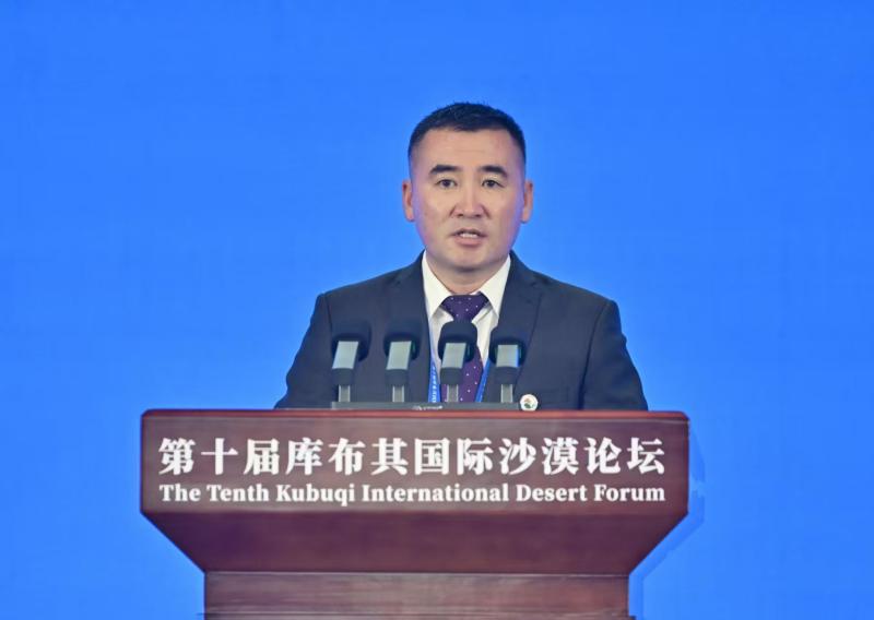 9月16日,國家林業(yè)和草原局局長劉國洪在第十屆庫布其國際沙漠論壇開幕式上致辭。草原云·內(nèi)蒙古新聞網(wǎng)記者馬建兵 攝?