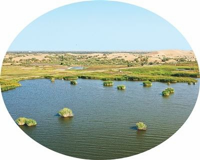位于庫(kù)布其沙漠里的七星湖景區(qū)。新華社記者 李志鵬攝